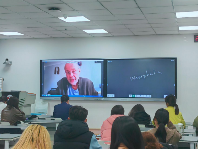 2023年11月9日19时30分,英超直播线上看 在五号教学楼202教室共同为我校涉外班同学组织安排了一场国际法方面的线上学术讲座。本场讲座由国际法研究院(日内瓦)院士、爱沙尼亚塔林大学教授、前英国伦敦大学国王学院教授、前爱沙尼亚外交部第一副部长、西北政法大学丝绸之路区域合作与发展法律研究院荣誉研究员和学术顾问瑞纳•穆勒森教授 (Rein Müllerson)主讲,英超直播线上看 副院长潘俊武教授进行了现场翻译,英超直播线上看 涉外班学生聆听了讲座。