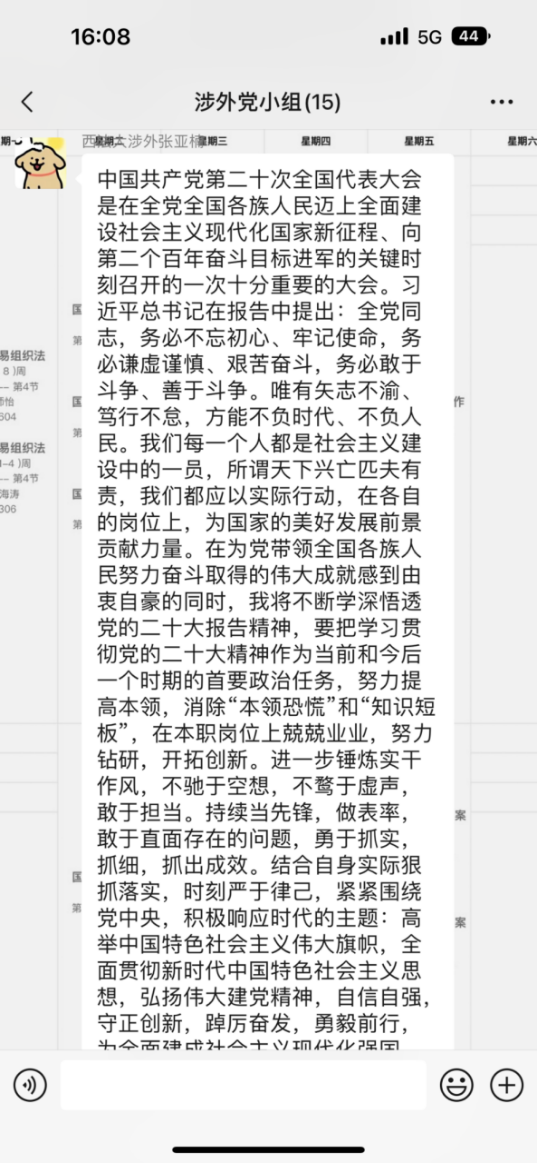大家纷纷表示,要更加笃信“两个确立”的决定性意义,更加忠诚践行“两个维护”;要带着理想信念学、带着使命任务学;要提升专业水平,淬炼科研本领,凝聚内生动力,以高质量党建推动学院涉外法治教育事业内涵式高质量发展,为国家涉外法治建设贡献力量。时代各有不同,奋斗一脉相承。本次学习交流会是对全体党员当前学习党的二十大精神的初步检验,下一步,支部将继续推动党的二十大精神学习往实里走、往深里走、往心里走,创新学习宣传宣讲活动形式,敦促支部党员在学深悟透、学以致用中踔厉奋发、真抓实干,积极主动将个人成长融入党和国家事业发展,助力学院教育事业取得新发展、迈上新台阶。