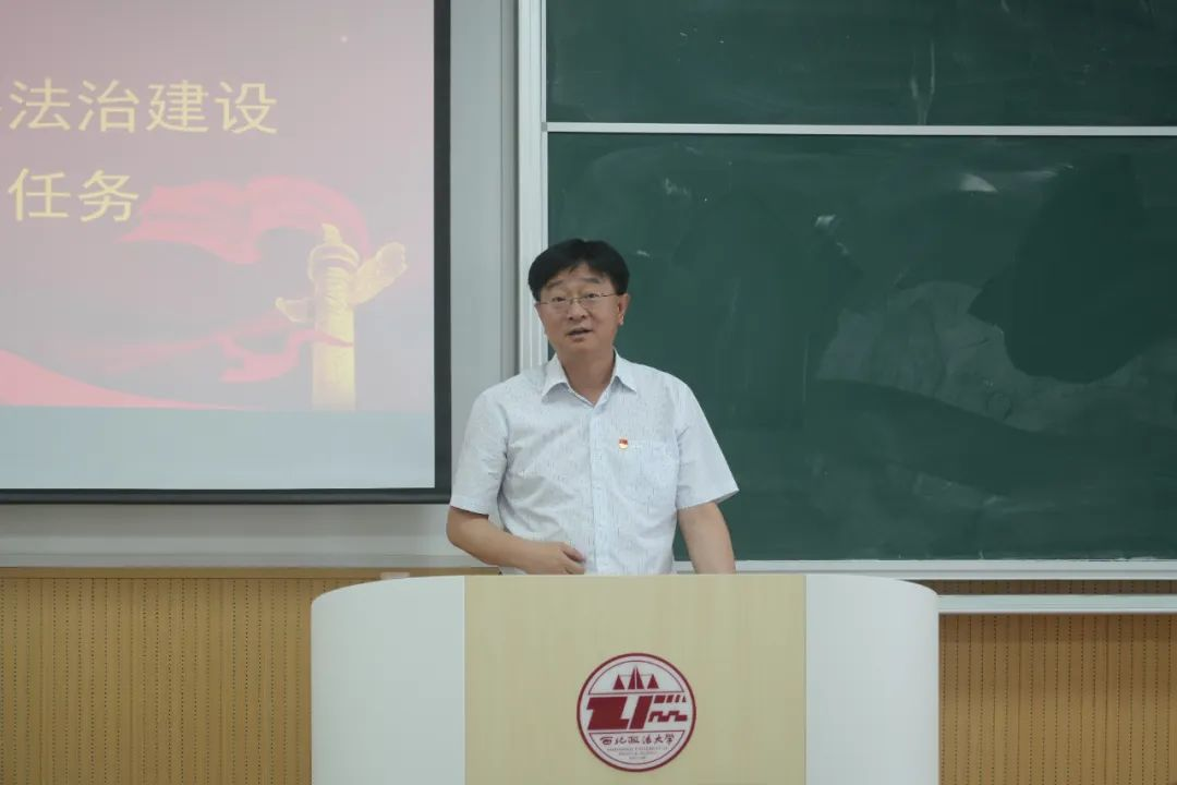 6月20日,校党委副书记、校长范九利以“深入学习贯彻习近平法治思想,积极投身国家涉外法治建设的伟大实践”为题,为英超直播线上看 师生讲授专题党课。专题党课由英超直播线上看 党委书记李立主持。