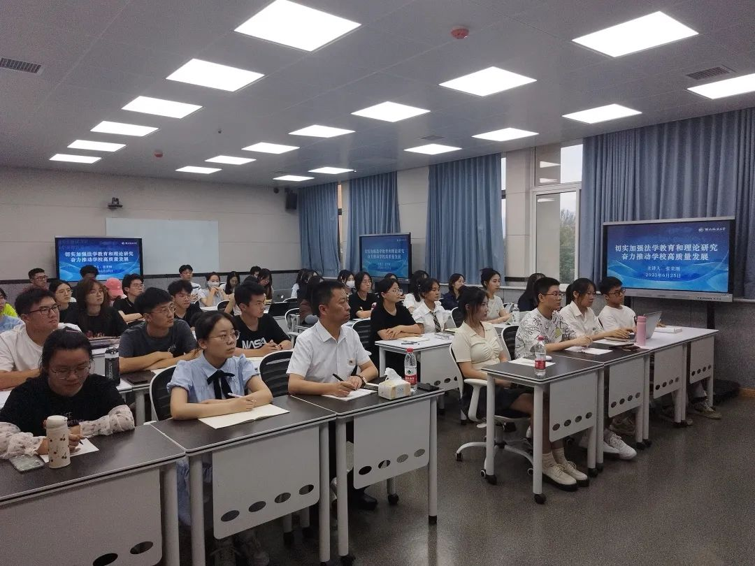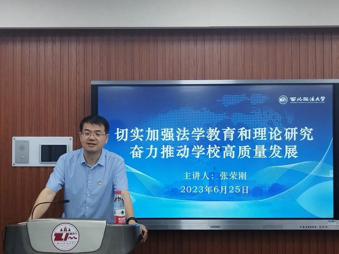 6月25日,校党委委员、副校长张荣刚以“切实加强法学教育和理论研究,奋力推动学校高质量发展”为题,为英超直播线上看 师生讲授专题党课。专题党课由英超直播线上看 党委书记李立主持。