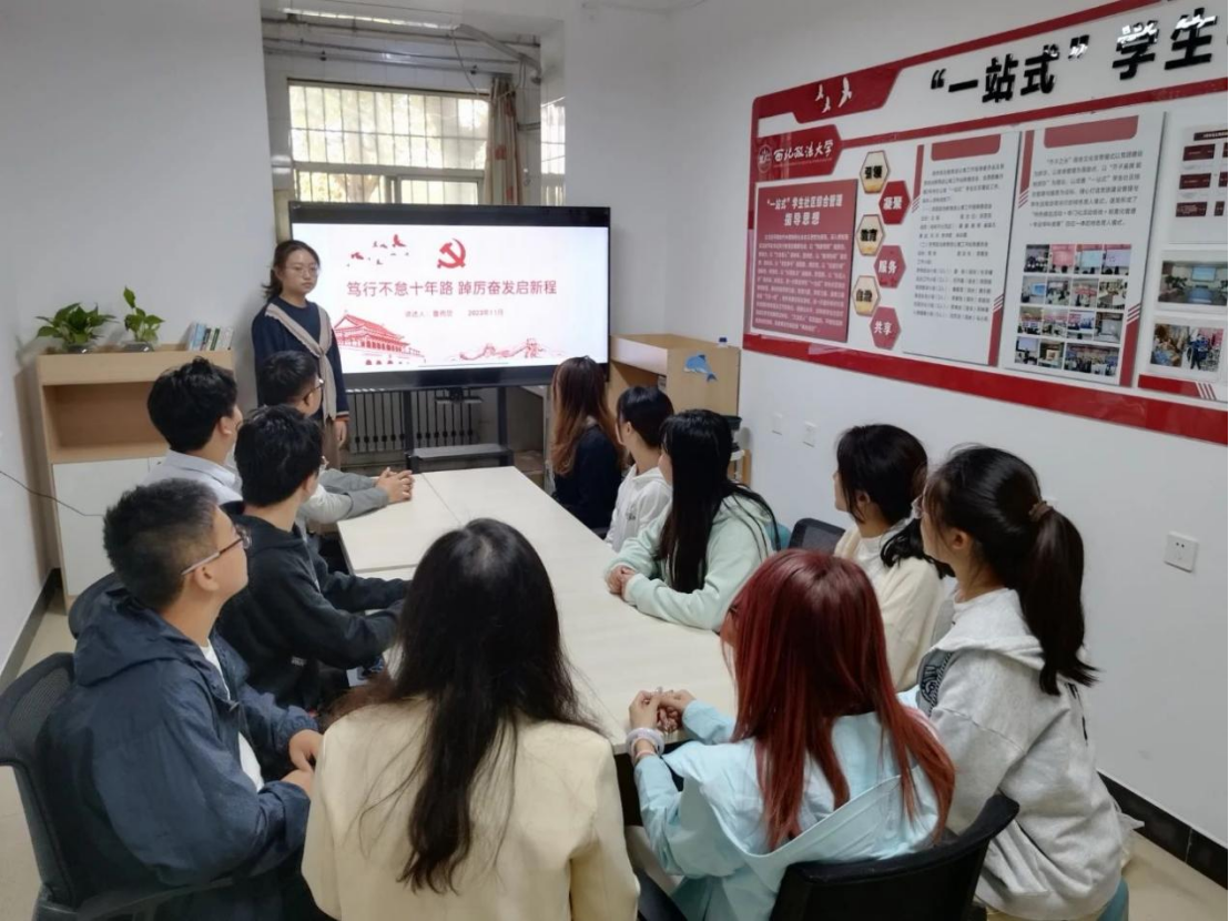 为深入学习贯彻习近平文化思想,增强文化自觉,坚定文化自信,11月24日,英超直播线上看 学生第一党支部于学生公寓2号楼思政工作站开展“笃行不怠十年路,踔厉奋发启新程”新时代十年伟大变革宣讲活动。