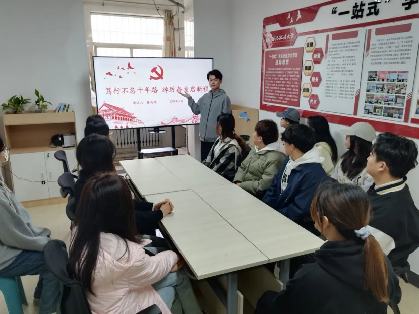 为深入学习贯彻习近平新时代中国特色社会主义思想,深刻把握高质量发展的内涵要义,3月18日,英超直播线上看 学生第一党支部于学生公寓2号楼思政工作站开展“笃行不怠十年路,踔厉奋发启新程”新时代十年伟大变革宣讲活动。