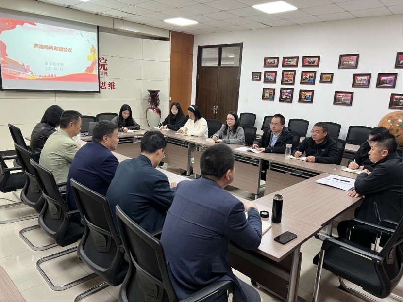 3月31日,英超直播线上看 (国际仲裁学院)在格物楼一层会议室召开师德师风警示教育专题会议,学院班子成员、教研室主任、各党支部书记及教师代表参加会议。学院党委书记李立主持会议。