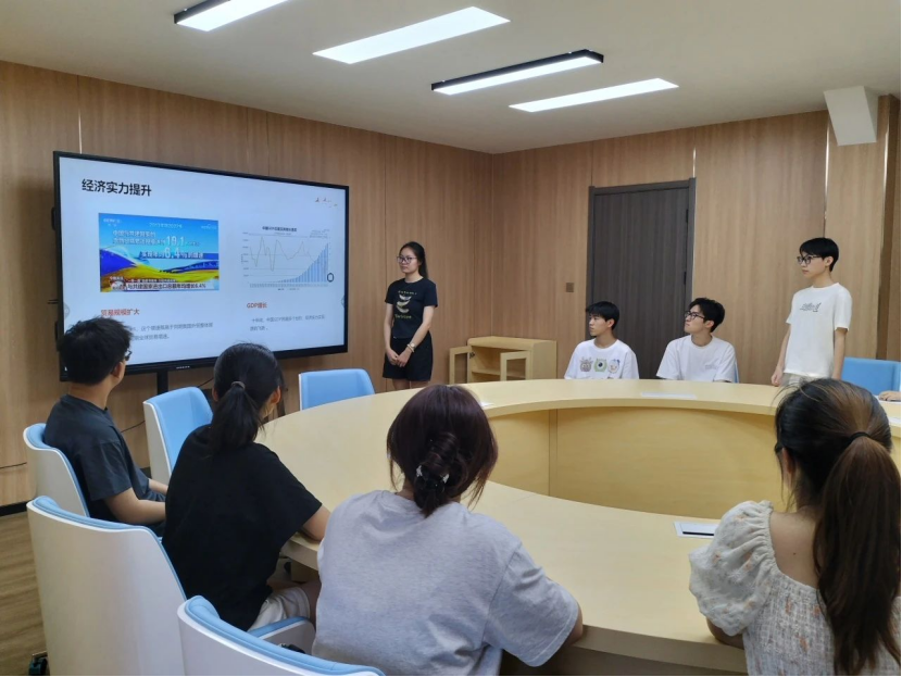 聚焦我国十年来在党的带领下取得的一系列突破性进展,支部成员详细阐述了党在政治外交、经济发展、理念倡导等各个方面采取的战略性措施,生动描述了我国经济稳定增长、民生继续改善的向上向好态势,充分展现出党的创新理论的强大真理力量与新时代强国蓬勃发展的潜力。