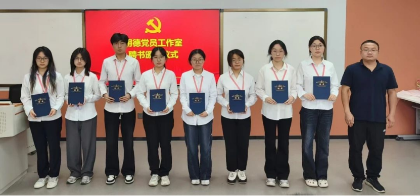 会议在庄严的国歌声中拉开序幕。李立宣读了《中共英超直播线上看 委员会关于2025年度“七一”表彰的决定》,并为受到表彰的11名优秀共产党员、14名优秀入党积极分子颁发证书,吴晓娟为12名优秀志愿者颁发证书。随后,韩潇为“明德”党员工作室各部门新任负责人颁发聘书,徐秉鹏、苏芝双、黄思齐向各部门新干事颁发聘书。