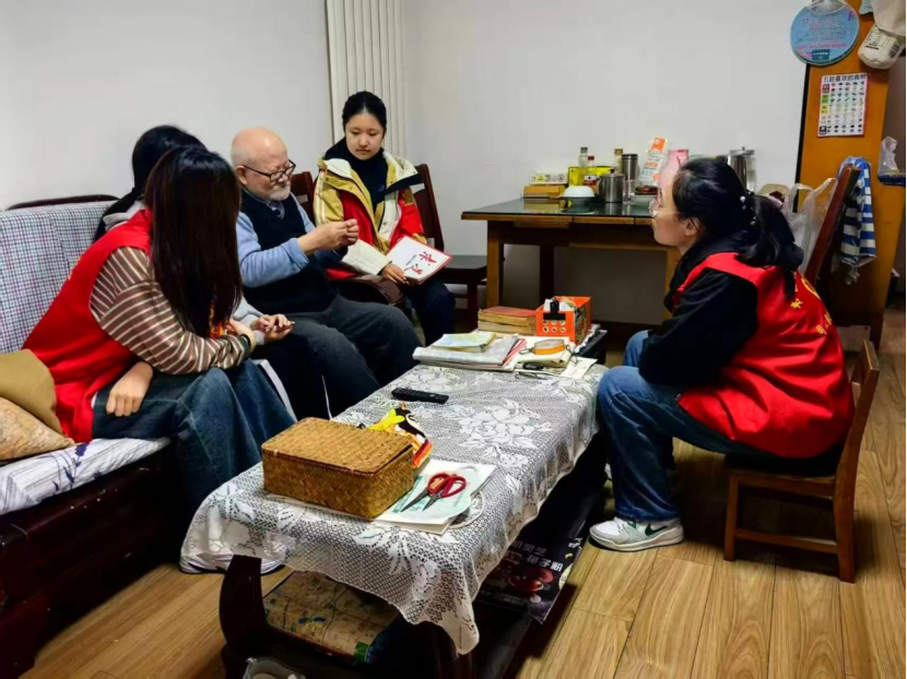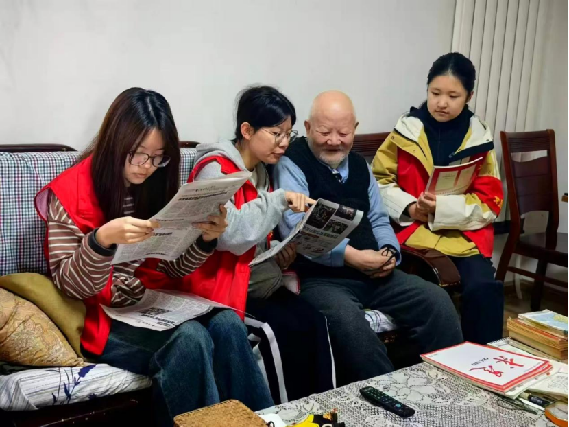 活动现场,志愿者们围坐在老人身边,捧着精心挑选的报纸期刊,轻声慢读时事要闻、社区新事,娓娓道来健康养生知识,认真倾听老人关于珍惜粮食、保持乐观的生活智慧和谆谆教诲,以耐心陪伴传递资讯、送达温情,极大地满足了独居老人的情感倾诉与陪伴互动需求,用心用情为老年群体办实事、办好事。