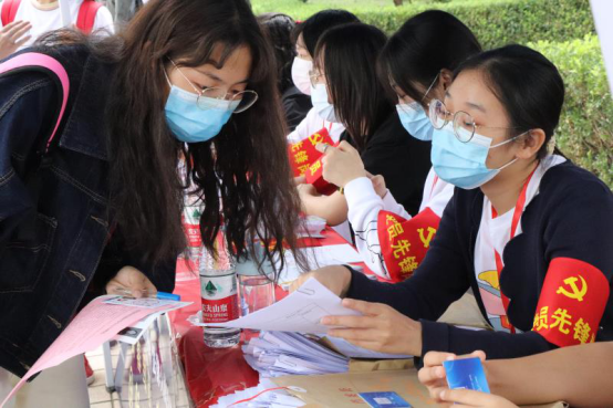 党员志愿者们统一佩戴党徽和袖标,以饱满的热情和良好的精神风貌投入到入校码核验、体温测量、入校引导、秩序维护、咨询服务、行李搬运等工作中,积极奔走在迎新的第一线,为新生提供了热情周到的服务,呈现出创先争优、夯实奋进、带头示范的生动景象,成为迎新现场一道亮丽的风景。