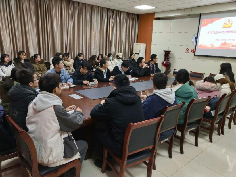 为深入贯彻落实习近平总书记在全面依法治国工作会议中的重要讲话精神,加强英超直播线上看 学生对习近平涉外法治思想的认识,争做涉外法律人才,12月11日,学院学生第一党支部于格物楼会议室开展学习习近平法治思想主题党日活动。支部全体成员参加会议,支部书记韩潇主持会议。