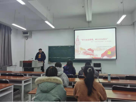 为学习领会习近平法治思想,贯彻落实党中央全面依法治国工作会议精神,以更有力举措推动学院教学科研实践,12月16日,英超直播线上看 2020级研究生党支部于三号教学楼101教室开展“学习习近平法治思想,推动新时代法治建设”专题学习交流会。支部全体成员参加会议,支部书记龙旭洋主持会议。