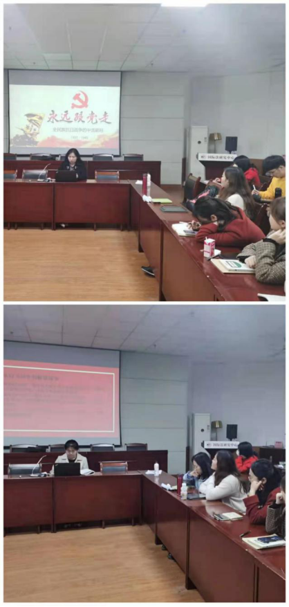 随后,张荧,李媛等七位同学分别从中国共产党成立、抗日战争、改革开放、新时代中国特色社会主义建设等八个阶段进行了讲解,通过文字、图片、视频等方式回顾了中国共产党的艰辛发展,生动讲述了我们党团结带领中国人民实现中华民族伟大复兴走过的百年历程。活动结束后,大家纷纷表示,要坚持把党史、新中国史、改革开放史、社会主义发展史作为终身学习的必修课,做到知史爱党、知史爱国,不断增强守初心、担使命的思想和行动自觉。