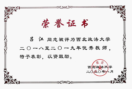 作为一名高校教师,吕江教授长年扎根于三尺讲台,培养了一批批投身于我国西部涉外服务的法律人才。从国际法学课程,到世界贸易组织法,再到“一带一路”能源合作法律问题课程,在“如何上好一门课”的问题上,特别是如何将专业课程与马克思主义理论相结合,如何将当前国家战略前沿与“一带一路”建设有机地融入到课程中,都倾注了他大量的心血。功夫不负有心人,除了课程备受同学和老师们赞许之外,其指导的本科生或继续攻读研究生,或出国深造,或初出茅庐成为涉外律师。而毕业后的研究生也大多受其影响,自愿留在了陕西、内蒙和新疆等西部地区,积极投身于我国西部涉外法治建设中。