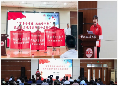 5月20日,西北政法大学党委学工部于图书馆一楼报告厅举办“百年奋斗路,政法学子行”全国政法院校学生党史学习教育联合实践活动启动仪式。会上,校党委副书记郭武军为英超直播线上看 党史学习教育实践队授旗。郭武军表示,实践队成员要在此次活动中弘扬“老延大”优良传统,传承红色文化基因,推动党史学习教育走深走实。随后,英超直播线上看 2018级学生宋子晗代表全体实践队员进行发言,表达了英超直播线上看 青年学生在开展党史学习教育和传承红色文化基因方面先做先行的坚定决心。