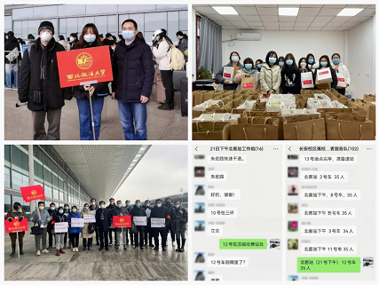 学院教师充分发挥党员先锋模范作用,坚守一线,为返乡工作注入“强心剂”和“暖心针”。全体辅导员坚持24小时在岗在线,连日加班加点做好“一人一档”学生离校信息台账摸排和南区本科生转运工作,确保离校学生底数清情况明、返家行程可追踪、家校协同有反馈;王泽林、王兆平、景亚男、时杜鹃、许珂老师准时准确协调跟车送站,积极解答学生及家长疑难问题,发放防疫物资,全力保障北区研究生安全转运;贺小丽、李捷音老师作为学校跟车管理志愿者,在各乘车点配合学校做好秩序维持、接送车辆带队等相关工作,确保“点对点”送站和“闭环”出行服务稳步进行。
