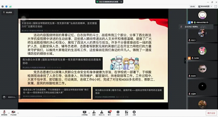 本次主题党日活动以线上形式开展,激发了全体党员抗击疫情的责任感、使命感,凝聚了战胜疫情的强大力量。疫情当前,支部将继续深入贯彻落实习近平总书记关于疫情防控工作的重要讲话和指示批示精神,始终站位靠前,自觉扛起责任,引导全体学生党员迎难而上,全力打赢疫情防控阻击战。