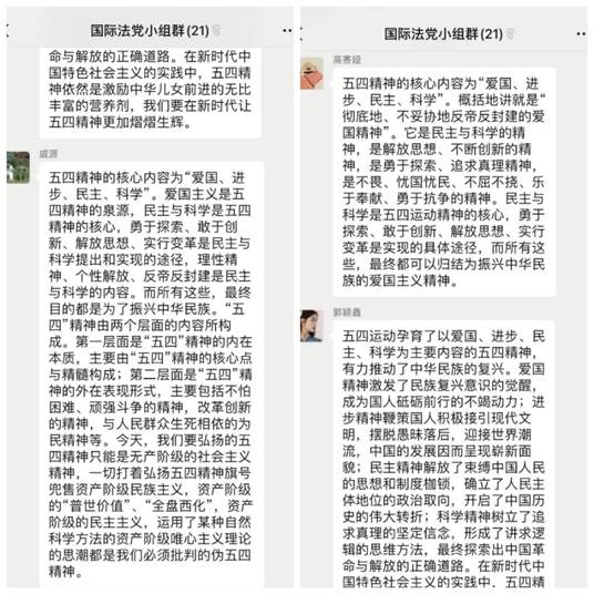 为深入学习领悟习近平总书记在庆祝中国共产主义青年团成立100周年大会上的重要讲话精神,引导支部成员紧密团结在以习近平同志为核心的党中央周围,踔厉奋发、笃行不怠,英超直播线上看 研究生第一党支部于5月13日通过线上方式开展“传承五四报国志,青春昂扬政法人”主题党日活动。支部书记潘或越主持,全体党员参加活动。
