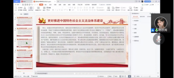 活动伊始,杨欣雨领学解读了《求是》杂志发表的习近平总书记的重要文章《坚持走中国特色社会主义法治道路,更好推进中国特色社会主义法治体系建设》。她表示,文章内涵丰富,论述深刻,逻辑严密,为坚持中国特色社会主义法治道路、推进中国特色社会主义法治体系建设指明了方向。要深刻领悟习近平法治思想蕴含的核心理念,提高政治站位,明确自身使命责任,用专业知识武装头脑,带头尊法守法用法,为营造良好的法治氛围、维护法治秩序贡献自己的力量。