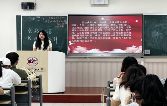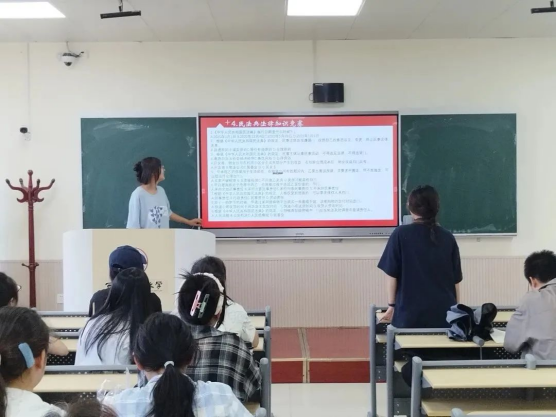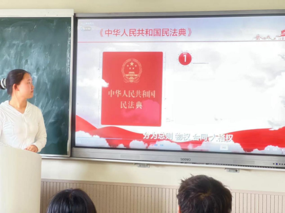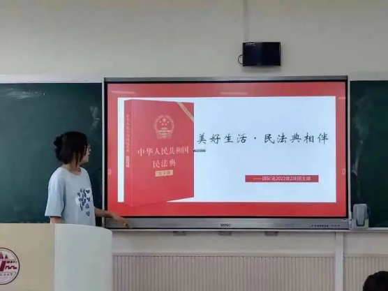 团支书由民法典三问入手,介绍了民法典的基本情况和各编的基本内容。以案释“典”的形式,以生动的案例、鲜活的语言向同学们讲述民法典故事、阐释民法典精神,并组织同学们观看民法典宣传片,引导大家做遵纪守法的青年。