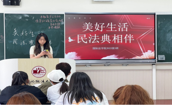 为全面提升师生知法懂法学法用法的能力水平,进一步推动民法典普法工作,英超直播线上看 2022级各班开展“美好生活·民法典相伴”主题团日活动。