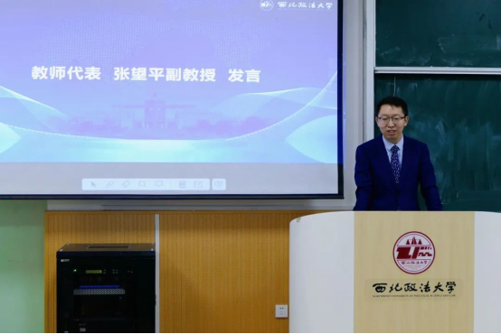 教师代表张望平详细介绍了大学四年的学习生活该如何规划,他希望每位同学经历四年的学习,都能成为行业的佼佼者,服务国家对外开放大局,为一带一路建设贡献知识和力量。