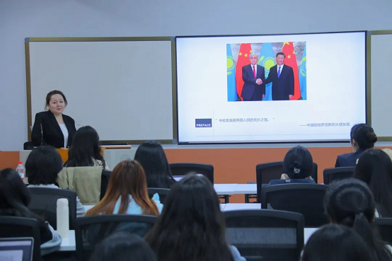 讲座伊始,教授以中国驻哈萨克斯坦大使张霄所言“中哈友谊是两国人民的无价之宝”向同学们说明了中哈两国建立紧密的合作关系对两国人民利益的保障。同时,教授讲述了伟大的丝绸之路是两国人民成功互利合作的象征,并根据五个时间段先后从发展经贸关系、睦邻友好的关系、战略伙伴关系、双边合作的主要机制、达到历史新高度等主题说明了中哈两国关系的发展历史。讲座最后,教授对学生的提问进行一一解答,强调了理解与包容的友谊对两国学生关系的重要性,并进一步阐释了中哈友谊的珍贵。