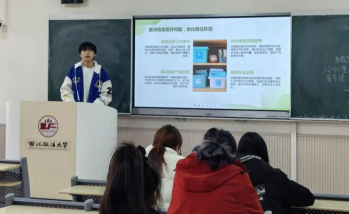活动伊始,李印豪介绍了本次活动的目的,指出要提升宿舍成员交流和友谊,解决宿舍现存问题,营造良好宿舍氛围。各宿舍长积极参与讨论,围绕学习环境、环境卫生、宿舍安全等提出了各自宿舍的问题,分享了自己的的想法。张凯撒总结了宿舍长们的建议,呼吁大家通过制定详细合理的宿舍规章制度,每天安排宿舍成员打扫卫生,定期举办一些宿舍小活动等措施把宿舍打造成一个温馨、舒适的家。