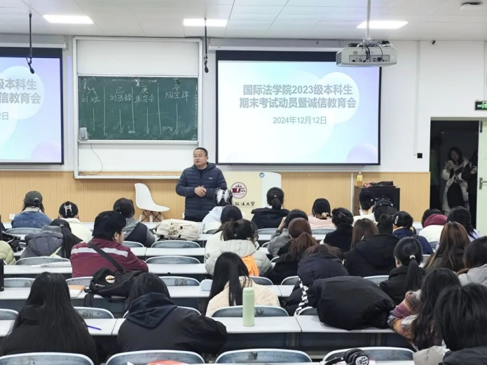 为进一步加强考风考纪建设,培养学生的诚信意识和规则观念,英超直播线上看 (国际仲裁学院)2023级辅导员苏芝双、2024级辅导员黄思齐于本周组织召开了诚信考试主题教育年级大会。
