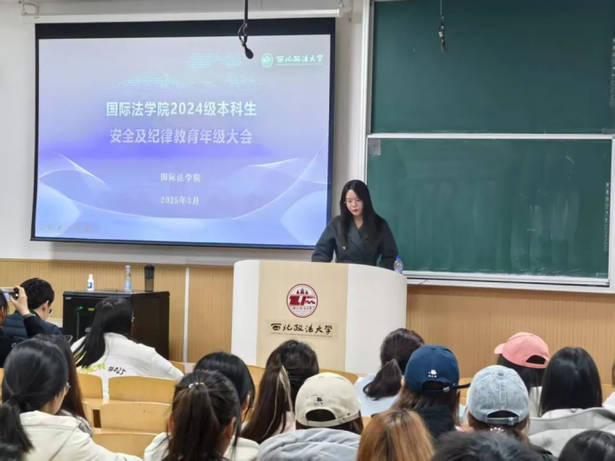 为深入贯彻落实党的二十大精神和习近平法治思想,共同筑牢校园安全防线,培育优良学风校风,英超直播线上看 (国际仲裁学院)举行了安全及纪律教育年级大会,由2023级辅导员苏芝双、2024级辅导员黄思齐主持,2023级、2024级全体学生参加。