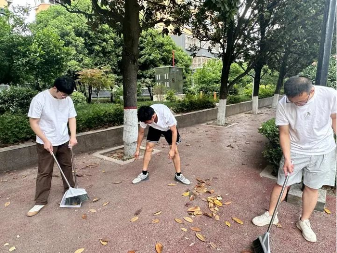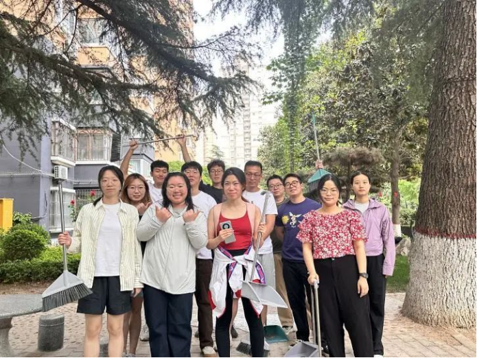 活动伊始,学院在九号楼学生公寓一站式学生社区开展劳模精神专题学习活动,学生通过观看《大国工匠》等纪录片,深入领会劳模精神的时代内涵。在理论学习的基础上,活动创新设置了“听声辨职业”互动体验环节。通过播放不同职业的工作场景原声,同学们在趣味互动中感受各行各业的工作特点,深刻认识到劳动价值的多元性。在主题研讨环节,通过主题发言和分组讨论等形式,同学们围绕 “劳动精神与个人成长” 等议题展开深入探讨,分享个人理想与职业规划。最后,全体研究生将理论认知转化为实际行动,对学院包干区域进行集中清扫。在这一过程中,大家以高效协作与扎实行动,生动诠释了新时代青年 “不怕苦、不畏难”的姿态,对劳动的热忱化作美化校园的实际成果。