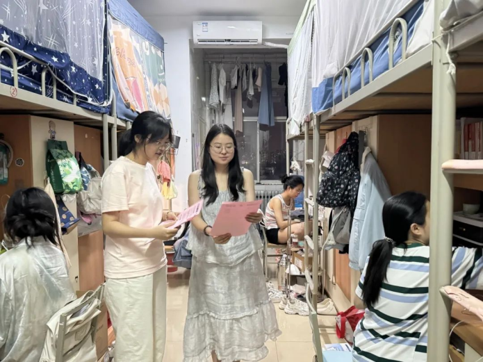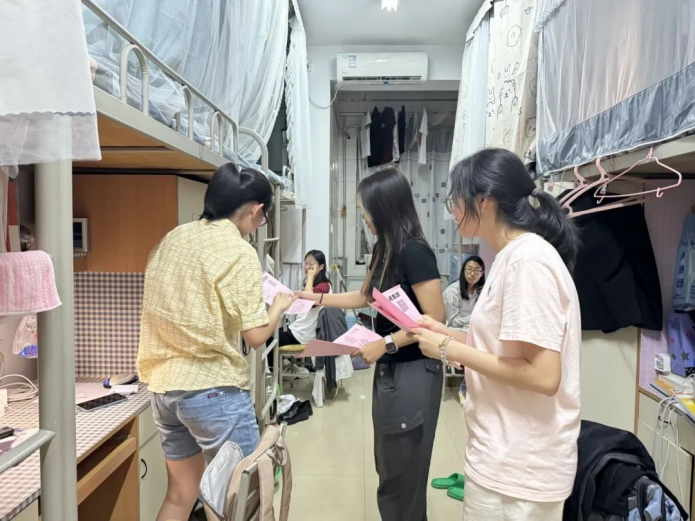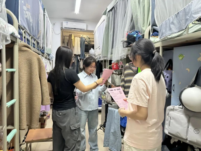 活动伊始,志愿者们分组前往各学生宿舍展开宣讲。他们聚焦校园生活重点讲解了校园借贷风险防范、个人信息保护、宿舍财物归属界定等法律要点,结合真实案例解析借贷合同陷阱、网络隐私泄露等常见问题,提醒同学们提高法律意识,学会用法律武器保护自身权益。志愿者们还分发并粘贴了民法典宣传单,通过系统阐述民法典中的具体法律条文展示民法典对学生权益的保障作用,呼吁同学们以知法明责的自觉、循法而行的行动,共同构建法治护航的校园生活新范式,让民法典真正成为青年成长路上的权益铠甲。