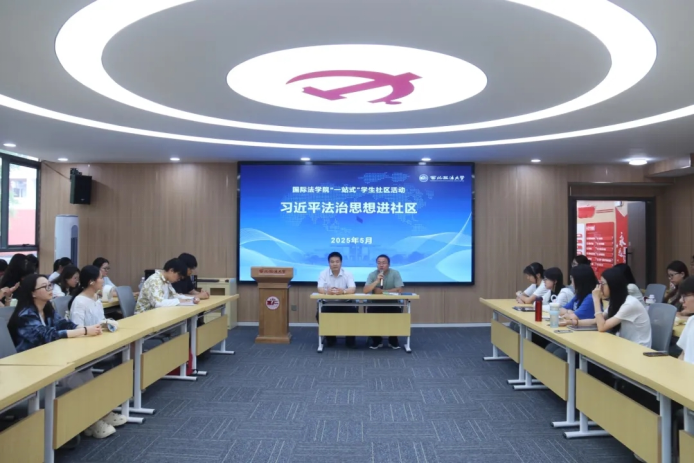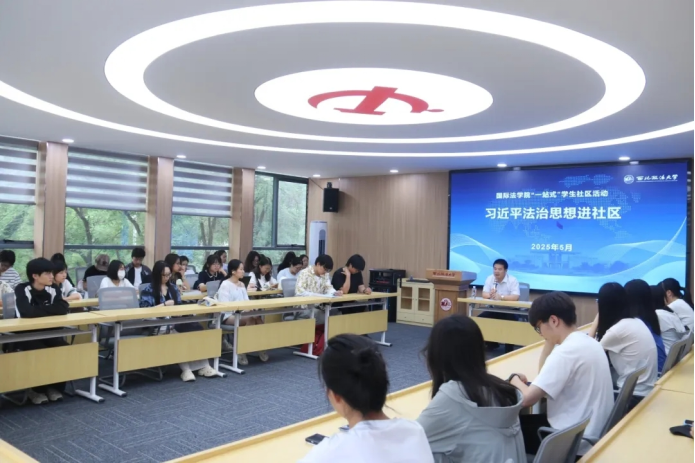 为深入贯彻习近平法治思想,增强学生对中国特色社会主义法治理念的深入理解,5月26日,英超直播线上看 (国际仲裁学院)在枫桥“一站式”学生社区·习近平法治思想宣讲室开展习近平法治思想进社区活动,学校习近平法治思想宣讲团成员,英超直播线上看 副院长潘俊武教授主讲,团总支书记苏芝双及2023级、2024级本科生参加。