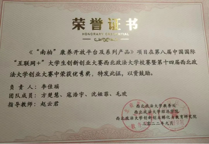 19.2022年第八届中国国际“互联网+”大学生创新创业大赛西北政法大学校赛暨第十四届西北政法大学创业大赛优秀奖
