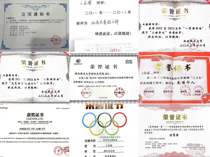 2、2022-2023学年英超直播线上看 (国际仲裁学院)“优秀入党积极分子”荣誉称号3、2021-2022学年西北政法大学一等奖学金暨“优秀学生干部”称号