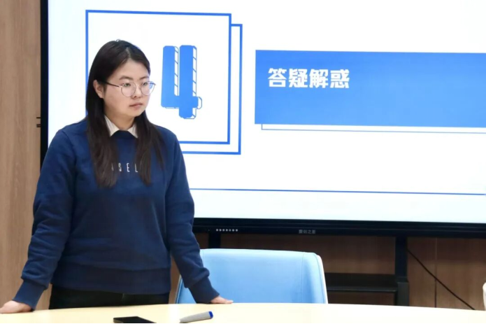 刘丹丹围绕共青团的性质与使命、团员发展与入党推荐以及基础团务核心工作对同学们进行了共青团基础团务培训。她详细说明了入团、入党的机制、标准,并对团内的日常管理、组织生活、制度建设、团员服务以及材料管理作出了解释。在答疑环节,刘丹丹对同学们提出的问题作出一一解答,成功化解了大家的疑惑。