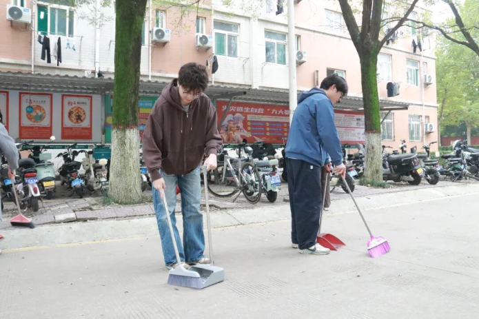 活动期间,同学们分工明确、通力协作,对主干道绿化带及公寓周边卫生死角展开了清理。大家手持清洁工具,认真清扫路面落叶,细致捡拾绿化带内垃圾,用心擦拭公共设施表面。同学们用实际行动诠释了吃苦耐劳、勤勉务实的精神品质。经过有序高效的集体劳动,校园环境焕然一新,公共区域整洁有序。