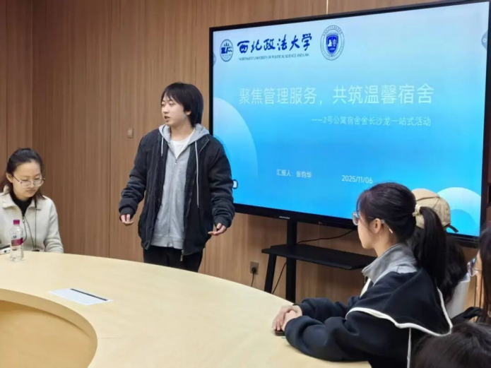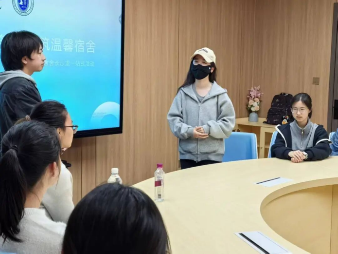 马雪瑞同学系统介绍了学院设立的两大服务资源:“青枫调解室”致力于为学生提供沟通平台,帮助双方解决矛盾,实现纠纷的和平化解;“心岛工作室”致力于打造安全的心灵栖息地,通过多样化的心理疏导方式帮助学生应对压力。她鼓励舍长们成为连接同学与这些资源的桥梁,在必要时主动引导同学寻求专业帮助,从而有效化解宿舍矛盾,营造和谐的宿舍氛围。