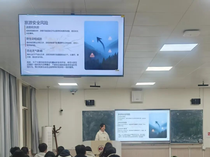 班会上,各班班委通过视频、图片、PPT等形式,结合真实案例,生动阐述了非法穿越秦岭对生态环境造成的严重破坏,明确指出此类行为所面临的严重法律后果,引导学生树立生态保护意识和安全底线思维,自觉抵制非法穿越行为。班会还围绕山区户外活动规范、野外用火安全、垃圾处理等内容展开科普宣传,号召全体学生严格遵守国家自然保护区相关法律法规,不组织、不参与任何非法穿越活动,以实际行动保护秦岭生态环境,保障自身与他人安全。