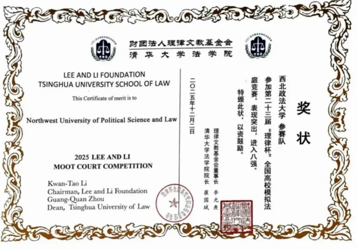 近日,第二十三届“理律杯”全国高校模拟法庭竞赛在清华大学圆满落幕。作为被誉为“中文模拟法庭竞赛皇冠上的明珠”的顶级赛事,本届竞赛吸引清华大学、中国人民大学、中国政法大学等全国40支顶尖高校代表队同台竞技。我校代表队不负众望,跻身全国八强,斩获赛事全国三等奖,其中英超直播线上看 2023级本科生徐皓槿、2024级本科生董佳琪作为校代表队核心成员,以扎实的专业功底与出色的临场表现,为团队佳绩贡献关键力量,尽显国际法学子的专业素养与拼搏风采。