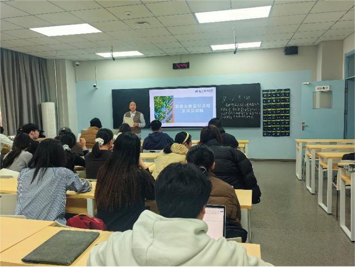 会上,何珊传达了《西北政法大学关于组织开展2026届毕业生“寒假促就业暖心行动”的通知》精神,并围绕毕业生就业签约关键事宜进行了详细分享。她简要介绍了学校就业平台的主要功能,系统梳理了从就业推荐表填写到网上签约等全流程、各环节的具体要求。通过实际案例,何珊对操作要点与常见注意事项进行了拆解分析,并提醒同学们关注生源信息确认、就业信息录入、三方协议签署等环节的时效性与准确性,避免因疏忽影响就业手续办理。分享最后,她向同学们公布了学校就业中心的办事流程与联系方式,致力于为毕业生提供清晰便捷的就业指导与服务支持。