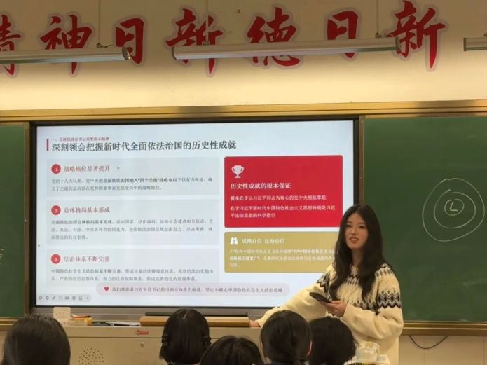 天津市南开中学滨海生态城学校的宣讲团队围绕学校办学底蕴、学科优势及人才培养特色,系统介绍了西北政法大学的法学教育资源和涉外法治特色专业,重点解读了学院涉外法治特色专业与国际化培养方向。队员们结合自身学习经历,分享了个人成长收获,帮助同学们真切感受到西北政法大学的法学专业魅力。宣讲过程中,团队细致解读了近年招生政策、录取情况与专业选择策略,为同学们提供了科学的学业规划参考。
