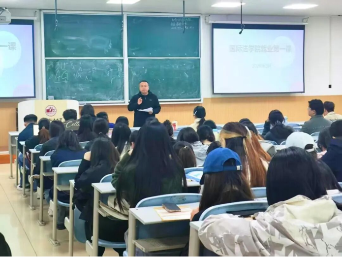 为切实做好就业服务保障工作,深化就业育人工作成效,精准破解学生就业难题、坚定就业发展信心,3月11日,英超直播线上看 (国际仲裁学院)在aj21教室开讲就业第一课,党委副书记吴晓娟出席,2023级辅导员苏芝双主持,2023级全体学生参加。