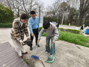 在团委的号召下,2024级6班团支部组织志愿者对学院清洁区展开清扫活动。大家手持扫帚、垃圾袋,分工协作、热情高涨,认真清扫道路落叶,细心捡拾绿化带中的杂物,不放过任何一个卫生死角。春风中,他们俯身的身影映在校园的小路旁,手中的每一次挥动都饱含对榜样的致敬。经过一番辛勤劳动,志愿者们所到之处都焕发新貌,映衬出春日的清新。
