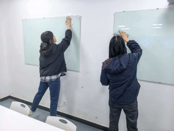 与此同时,2025级4班团支部也在团委带领下积极投入到教室清扫整理专项行动中去。志愿者们分工协作、配合默契,俯仰之间擦拭黑板讲台,细致入微清扫地面纸屑,认真规整每一处公共物品,合力清除墙面上的污渍痕迹。汗水与专注交织,责任与热忱同行,他们齐心协力,将教室的每一寸角落都当作共同守护的家园。窗明几净间,书香更显浓郁,雷锋精神也在这一方小小的学习天地悄然扎根、默默生长。