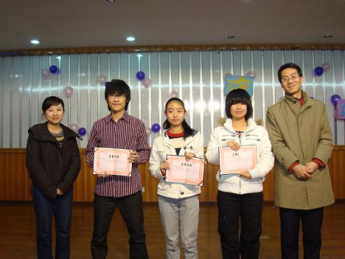 最终,经过两个半小时的激烈竞争,05号选手邓雨虹以13.98的高分勇夺头名;07号选手牛子孺,08号选手黄梅获得二等奖;02号选手李婵,11号选手欧阳家恒,13号选手刘雅楠并列第三。乔老师和秦老师亲自为获奖选手颁奖,并合影留念。