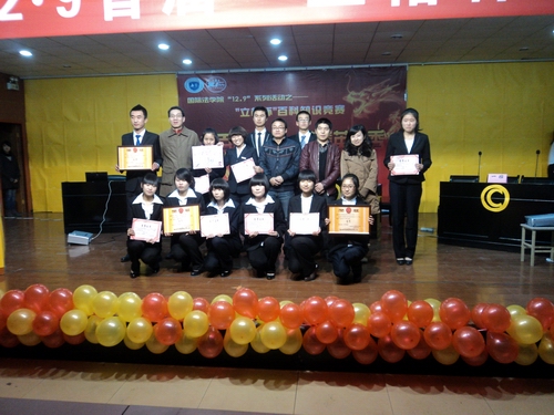 本次比赛以团体赛形式开展,历时一个礼拜,经过激烈的预赛最终决出三支队伍,分别是2012级国际法一班、二班、七班。今晚的决赛将决出一二三名。
