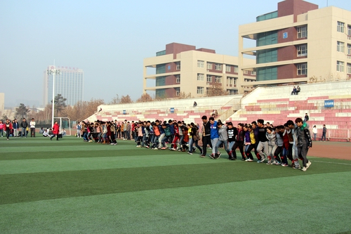 下午2点,众志成城项目正式开始。参加比赛的班级派出15名同学,他们用绳子绑住自己和相邻选手的脚踝,共同前进,比赛赛程为30米,最终计算比赛用时,决出名次。比赛前,参赛队伍进行了多次训练,队友之间默契的配合是之前训练的结果。在众志成城比赛中2012级4班夺得冠军,2012级5班获得第二名。