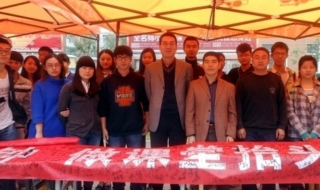 团总支书记冯斐老师及辅导员苏芝双老师莅临现场,并在横幅上签名,呼吁同学们合理使用手机。