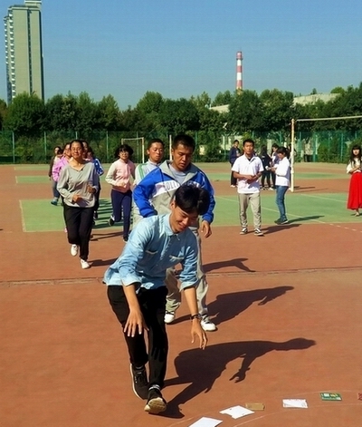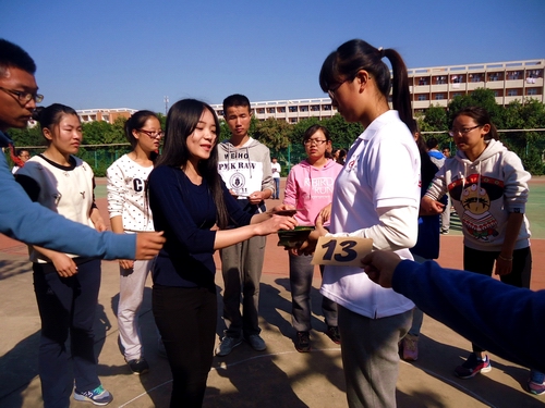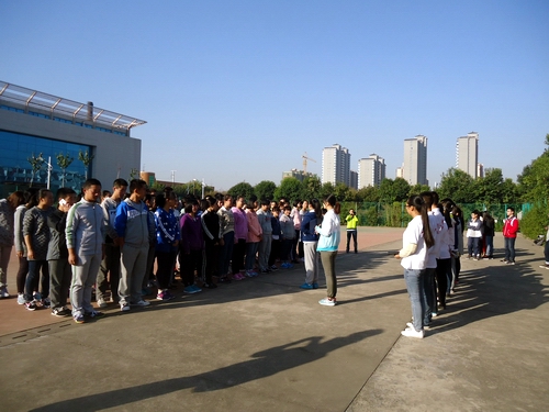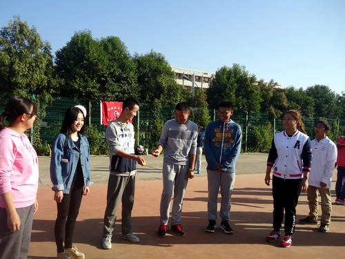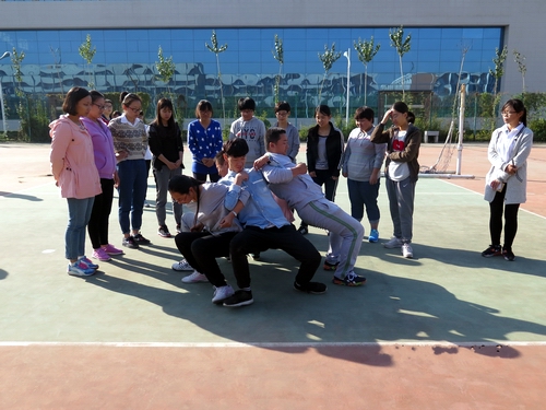 学生会2015级新生素质拓展训练在体育馆前方的排球场上正式举行。本次活动包括四个项目:“直呼其名”,“坐地起立”,“勇过雷区”和“达芬奇密码”。参与训练的大一干事们被分为四队进行活动。在经过两圈慢跑的预热之后,活动正式开始。