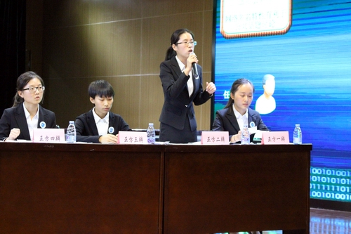 比赛正式开始,一辩何邺对次辩题条条陈列,有理有据,思路清晰。二辩申白杨观点明确,言词锋利,才思敏捷。三辩连静波负责盘问与小结,其观点明确,沉稳不惊。短暂的战术指导后,比赛进入自由辩论环节。其后,四辩吴家皓作了总结陈词。