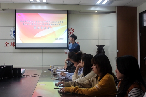 2018年5月11日中午12时50分,习近平在纪念马克思诞辰200周年大会讲话暨习近平在北京大学师生座谈会上的讲话学习交流会,在西北政法大学长安校区英超直播线上看 会议室隆重举行。参加本次交流会的有英超直播线上看 党委副书记王聪、英超直播线上看 团委书记秦音、英超直播线上看 2014级辅导员韩潇、 2016级辅导员苏芝双及学院各年级学生代表共计40余人。 交流会由英超直播线上看 2017级辅导员徐秉鹏老师主持。