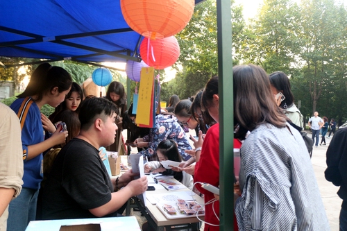 为提高中秋迎新生活动的丰富性,汉服社同学身着传统汉服,在格物楼及小树林走道进行活动,营造了中秋传统气氛,让新生们体会一番新奇有趣的校园生活。